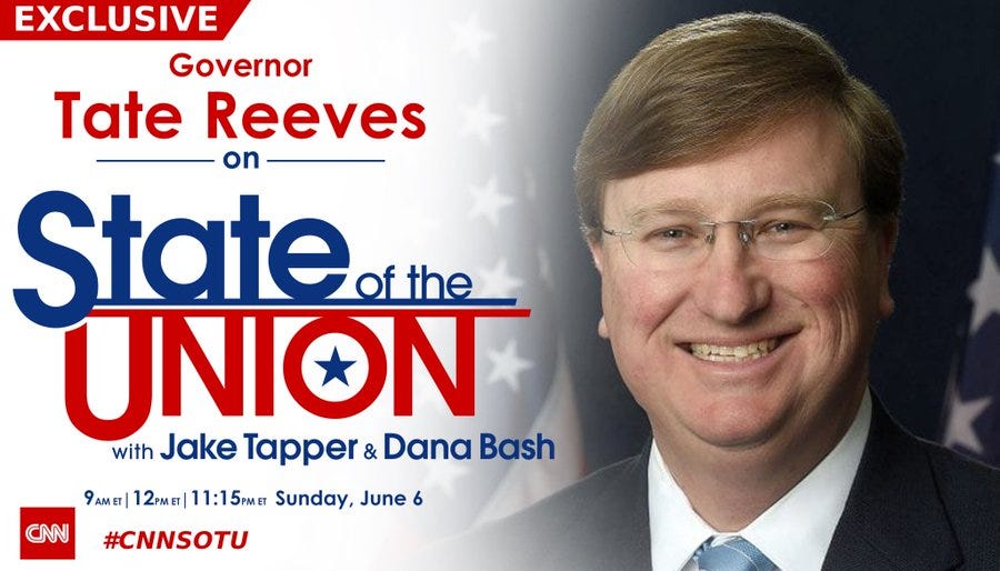 In an interview with CNN’s Jake Tapper this weekend, Mississippi governor Tate Reeves, a 47-year-old Republican, extolled the virtues of his state’s new law banning all abortions at 15 weeks, with no exceptions for rape, incest, or health of the mother.