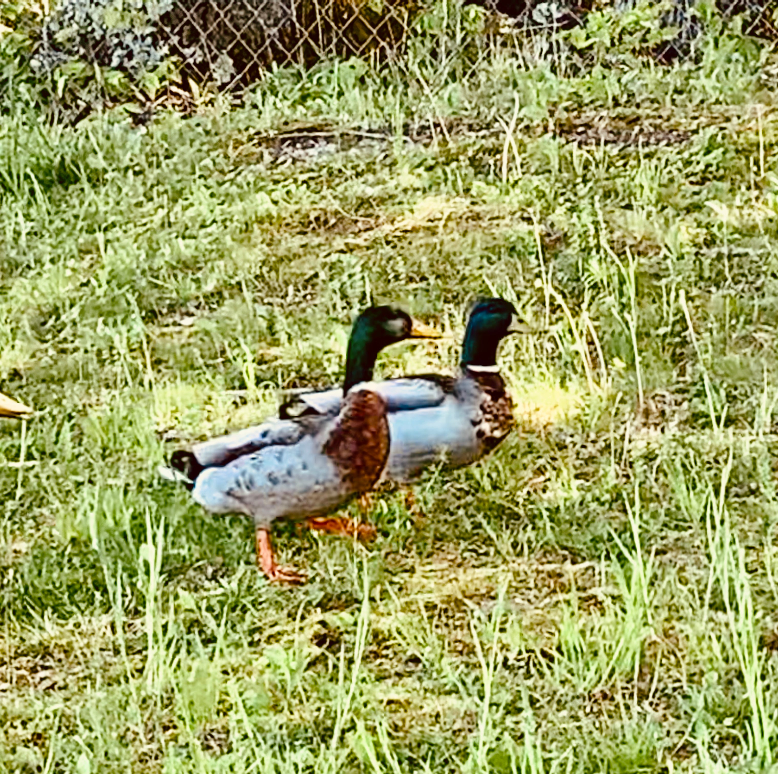 I discovered a section of the nearby (and empty) campus I never knew existed. There is a creek, and a little nature preserve, and rolling fields of green grass. One day, I saw a beaver—a fucking beaver! in the suburbs!—dash into the water, surprised at my sudden appearance. I’ve seen mallard ducks (see photo above), and geese, and cranes. I thought the crane was one of those statues they put at artificial lakes to scare off unwanted wildlife, but then it turned its head and stared at me! There is a bird I see often, that is pure black, but for these stripes on the wings that are neon orange. Is it an oriole, maybe? I have no idea.
