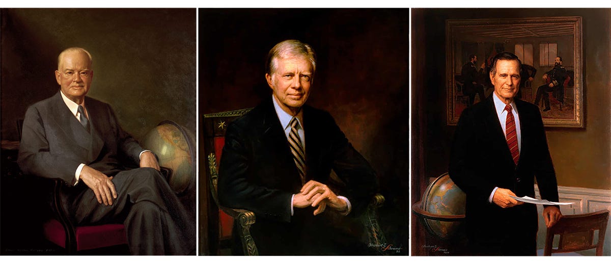 Photo credit: Presidential portraits of Hoover, Carter, and Bush I.