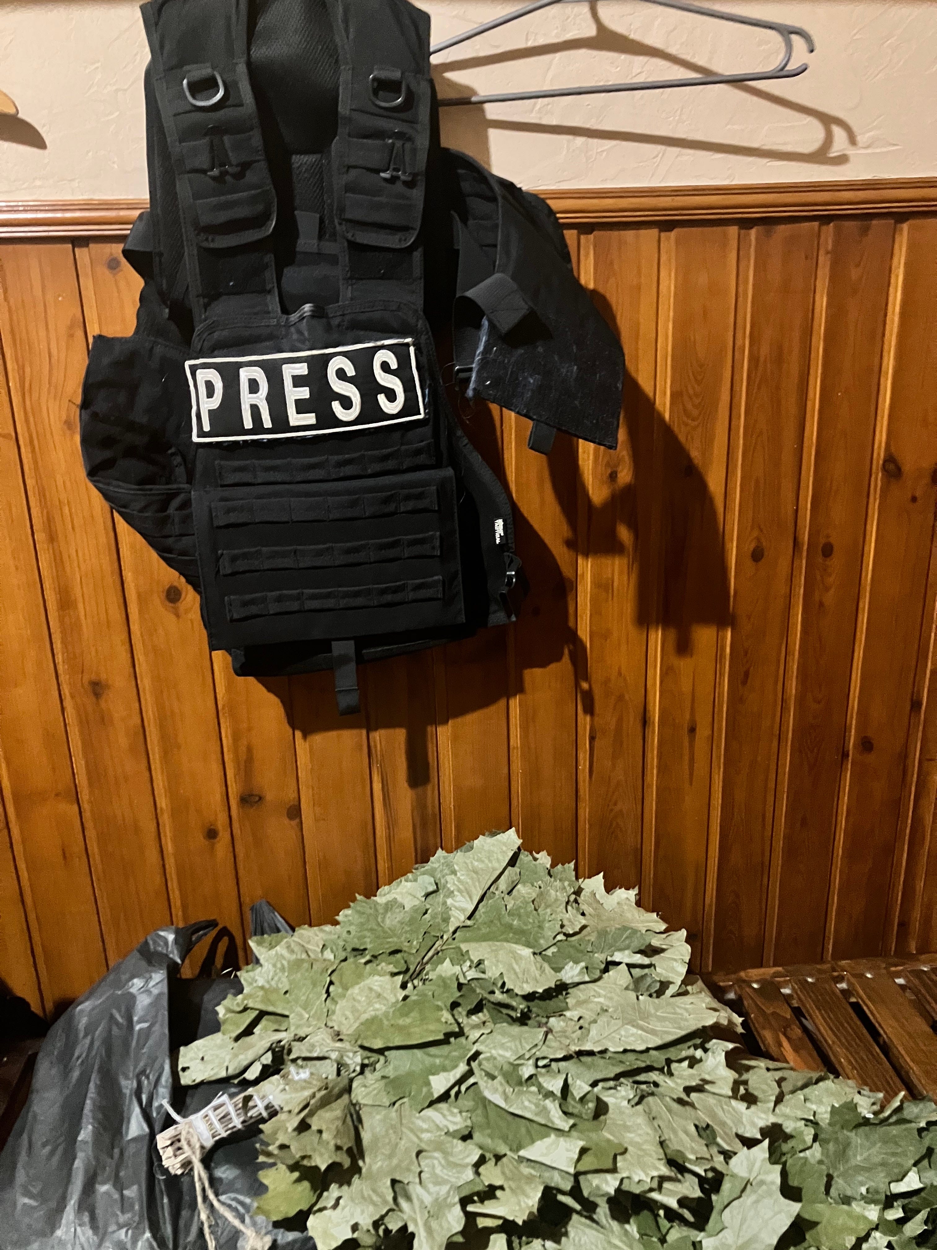 In any weather, the heavy grip of a bulletproof vest—along with its distinct Velcro crackling—became so familiar that stepping outside without it doesn’t feel right anymore. It changes your center of gravity and reorients your spine. Unfamiliar lightness makes me anxious—just like a night without shelling.