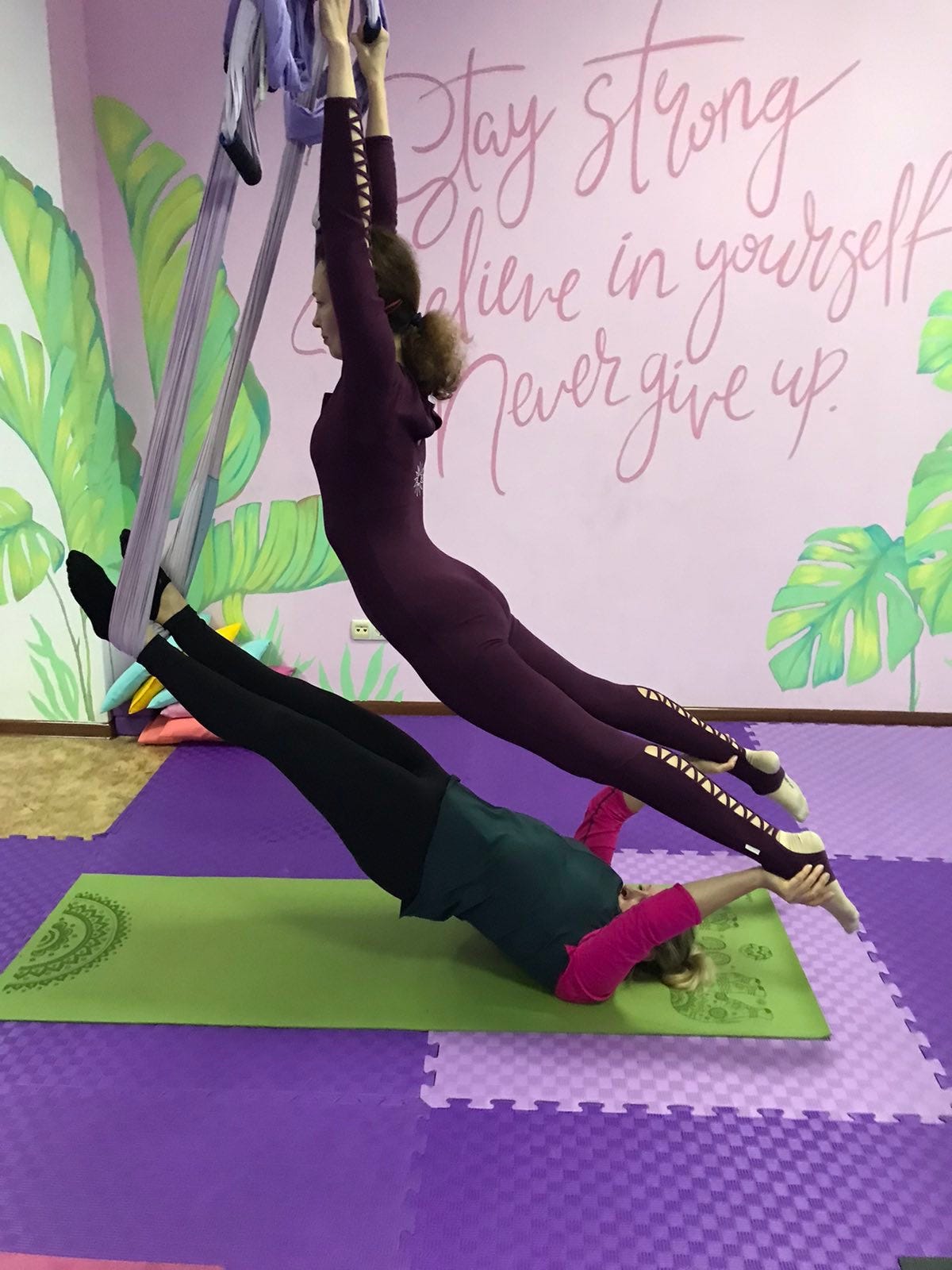 The sense of touch turns into another survival tool. Kherson is an athletic, corporeal city. A few gyms and yoga studios run fitness training and group exercise classes amidst shelling and explosions. In a fly yoga class, Jane, always radiant and gentle, teaches women to balance off each other’s shoulders in an airy studio, trying Cirque de Soleil poses requiring not just strength but trust. Nothing clears your mind like hanging upside down from the ceiling to the sounds of heavy artillery. At a women's health practice, a tall, mermaid-like Olexandra teaches to clap palms on thighs to lower stress and rub the bare toes on the ribbed texture of the rug to the siren’s howl.