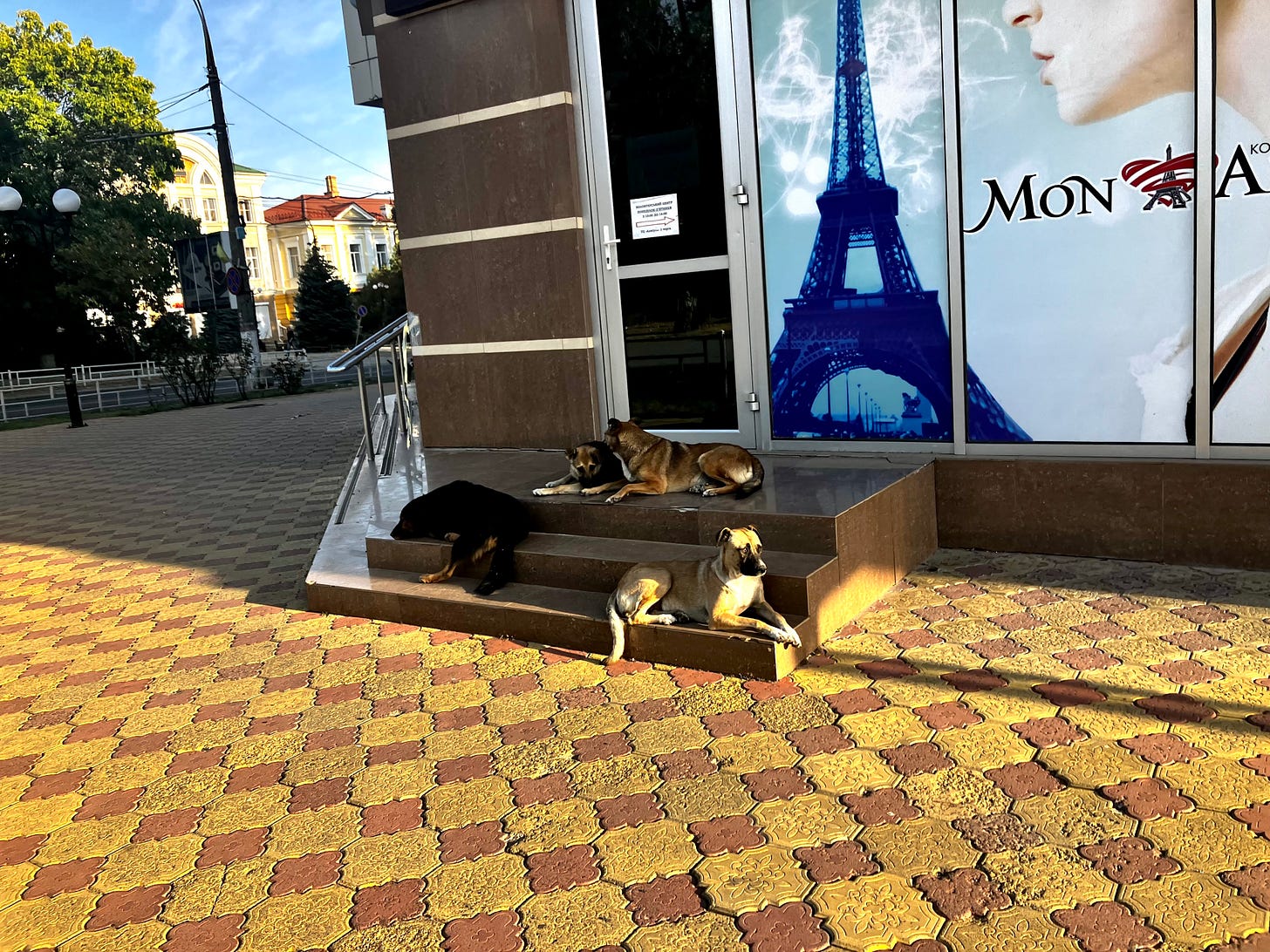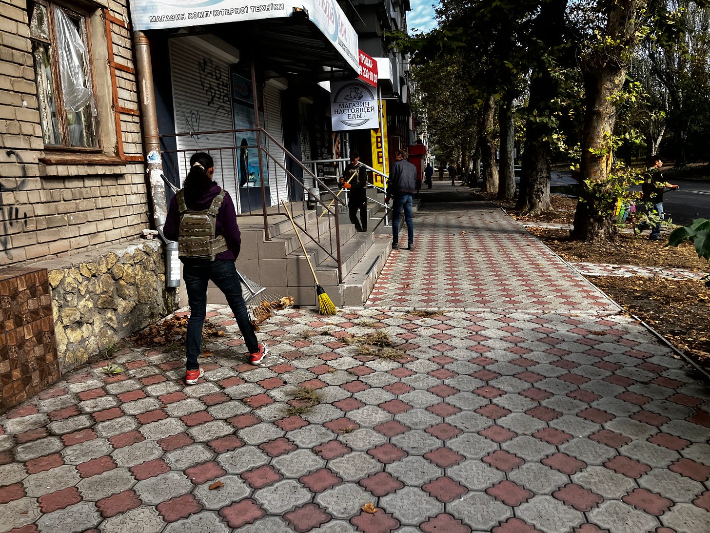 The central grocery store’s deli overpours with steaming and bubbling burritos, lasagna, pizzas, golden cheeses, and marble hams. The fruit aisle features dragonfruit, cactus leaves, papaya, and the symbol of Kherson—watermelon. In October, Halloween pumpkins and witches compete with the “Grads” and “mopeds” outside. In December, Christmas trees glitter and twinkle, Jingle Bells and Baby, it’s Cold Outside tunes playing softly. The variety of Advent calendars would make any Western store pale with envy. Smiling sales ladies remember you prefer freshly-baked rye bread over baguettes and insist you opt for sesame buns instead. After a ballistic missile attack, Katya, a strawberry-blonde cashier, joked that the management should install a cooler with brandy for customers—“for nerves.” Alcohol is sold strictly from 10 am to 3 pm, though, at the stores and a few bars still open, and Katya would not budge.