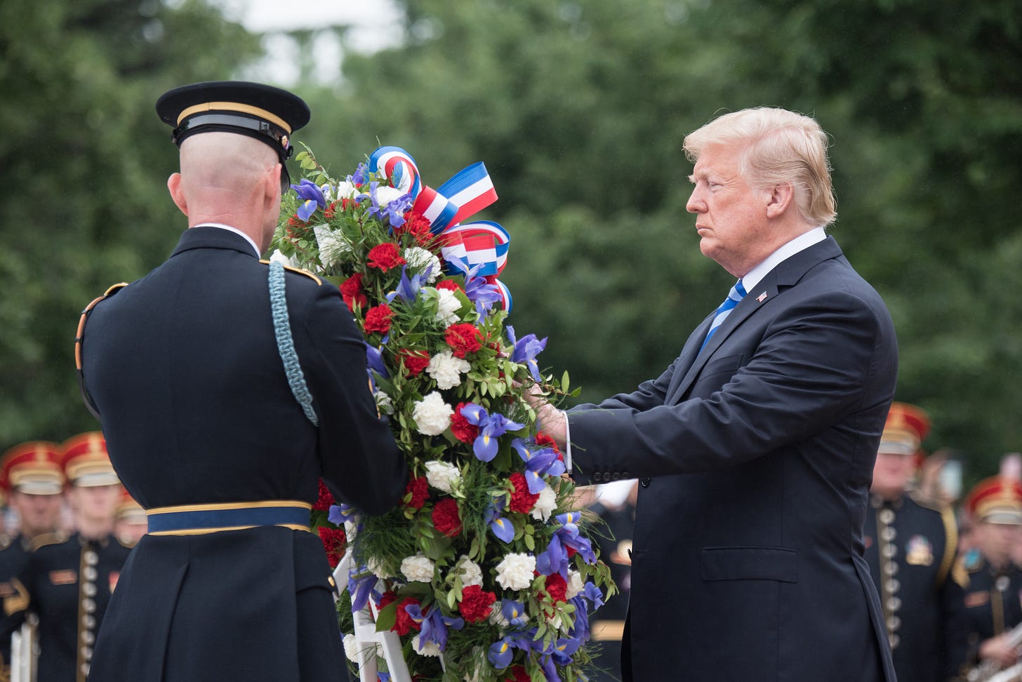 Photo credit: President Donald J. Trump, places a wreath at the Tomb of the Unknown Soldier as part of the 150th annual Department of Defense (DoD) National Memorial Day Observance hosted by the Secretary of Defense at Arlington National Cemetery, May 28, 2018. Senior leadership from around the DoD gathered to honor America’s fallen military service members. (DoD Photo by U.S. Army Sgt. James K. McCann)