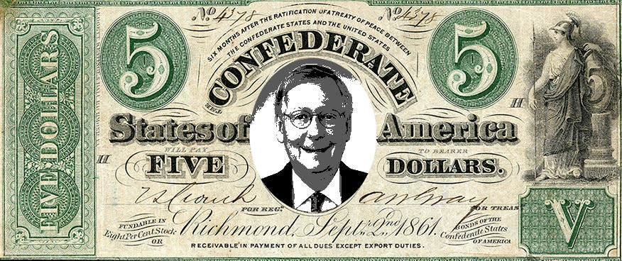 Many factors contributed to this outcome, yes. But the root of the problem is the Republicans’ refusal to compromise. The GOP are not small-d democrats any longer. Mitch McConnell and his confederates are the modern heirs of Christopher Memminger, Robert E. Lee, and Jefferson Davis. Which should come as no surprise: