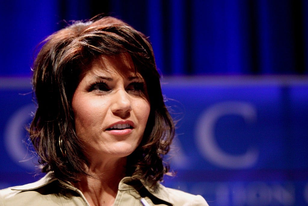 This is no great shock. In the last 11 years, the ambitious Noem has risen from the South Dakota House of Representatives to the U.S. House of Representatives to the Governor’s Mansion to an appearance at the Republican National Convention. For this, she is envied in GOP circles. As Kevin McCarthy, the (seditiously corrupt) House Minority Leader, wistfully remarked to the New York Times, “I look at Senator Tim Scott of South Carolina and I look at Gov. Kristi Noem of South Dakota, right? Ten years ago they were sitting in House seats.”