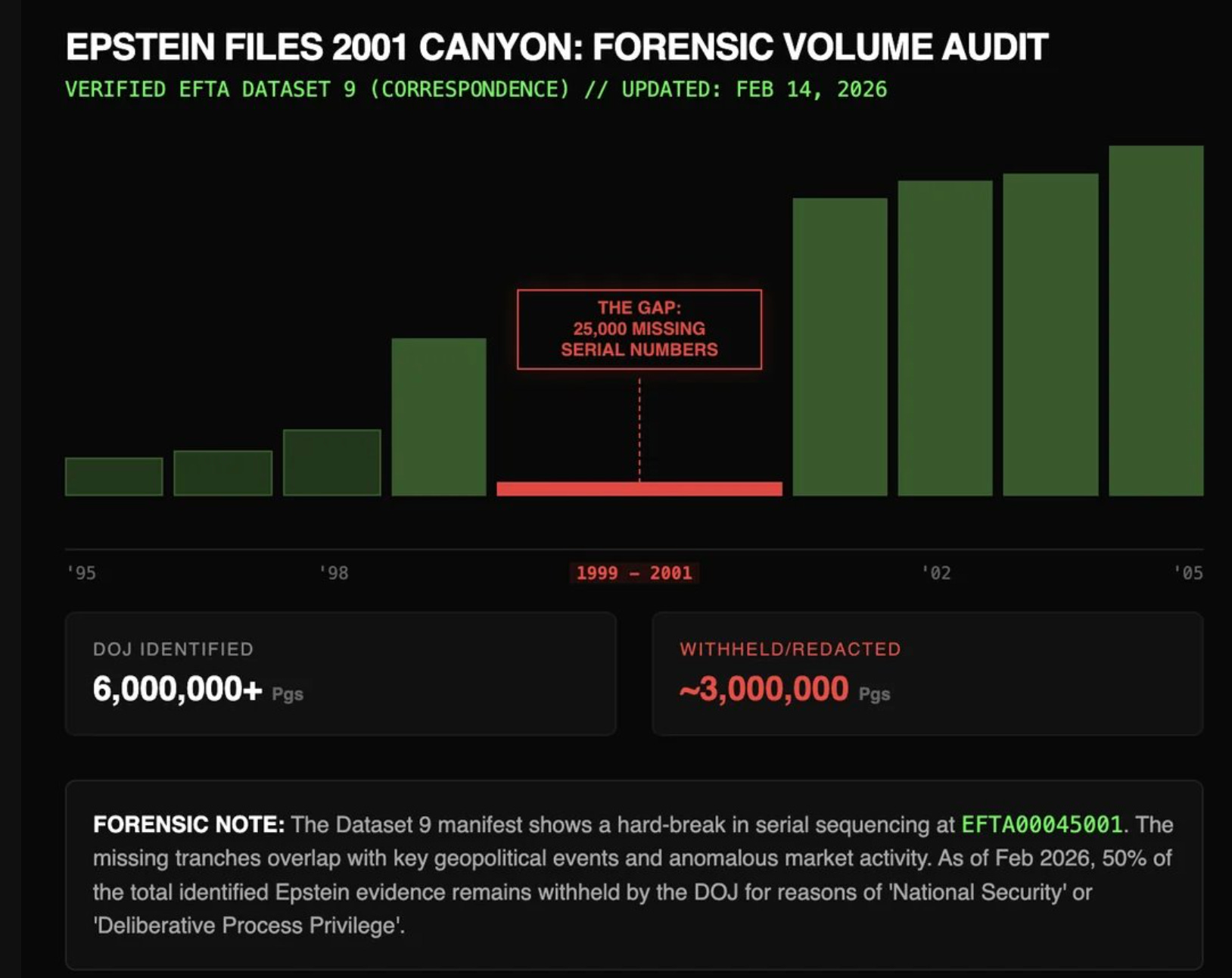 And then there’s also, as I wrote about this in my Epstein piece about what it could possibly be, the fact that there’s the files—and I didn’t even put this in my piece this week about Lutnick because I wasn’t sure of it, but Dave Troy posted it, so therefore it’s accurate. The Epstein Files between 1999 and 2001 are being suppressed.
