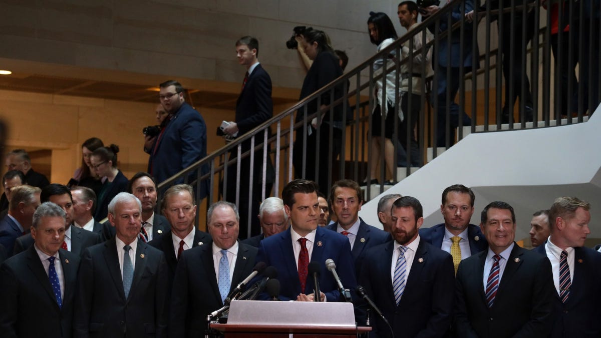 Photo credit: Official Matt Gaetz press release photo. Gaetz speaks after breaching the SCIF.