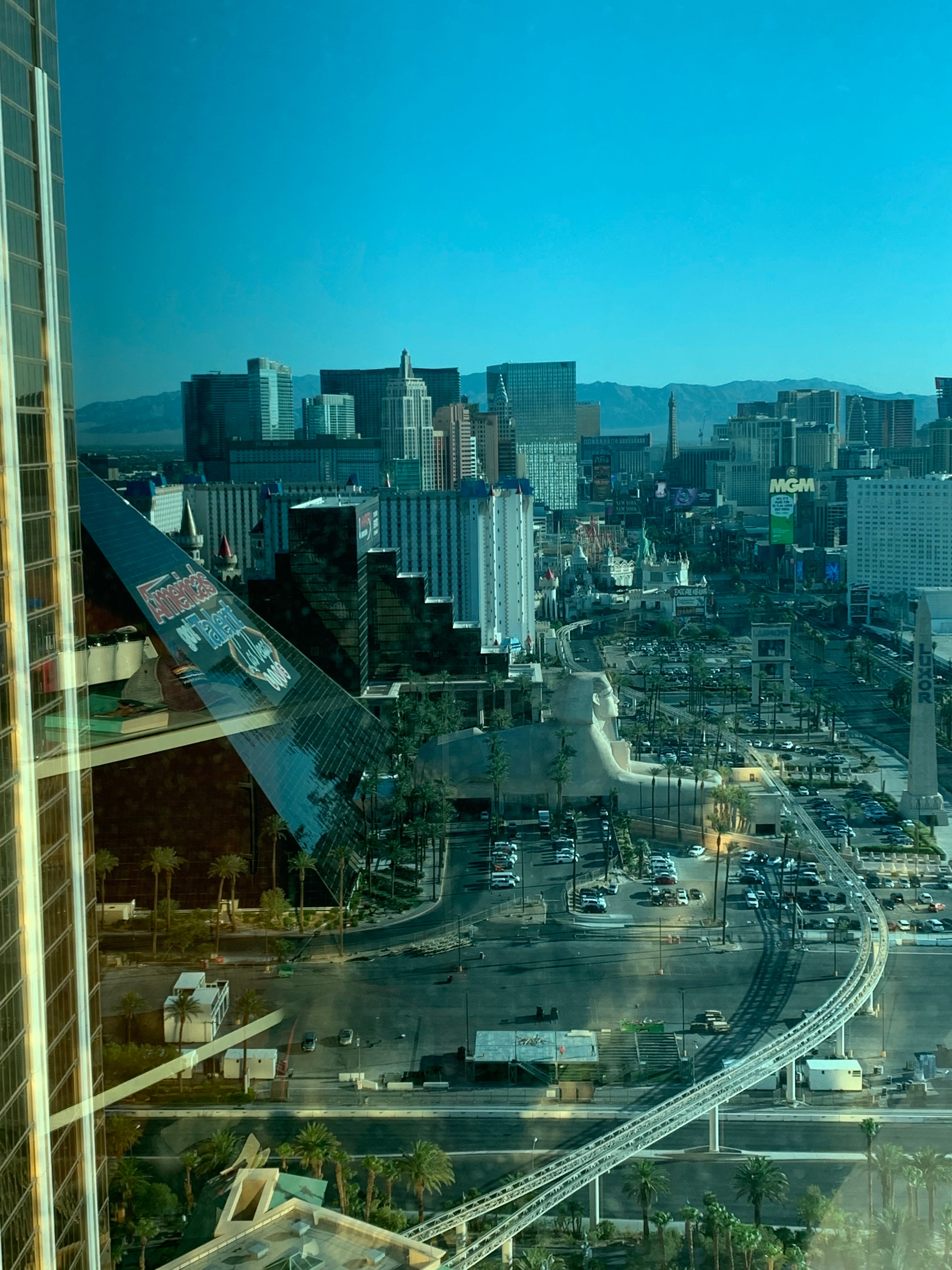 Mandalay Bay is on the southern end of the Strip. From our room, you could see the whole gaudy expanse of it. I brought the binoculars my wife gave me for Father’s Day, and I sat at the window and took it all in: