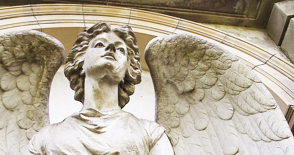 Photo credit: Cropped image by R Neil Marshman. Stone angel on a grave at St Mary Magdalene parish church, Castle Ashby, Northamptonshire.