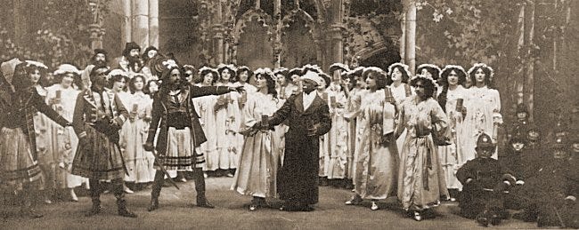 Photo credit: GS Archive. Image of Henry Lytton as the Pirate King denouncing the Major General (C. H. Workman) in The Pirates of Penzance, 1909.