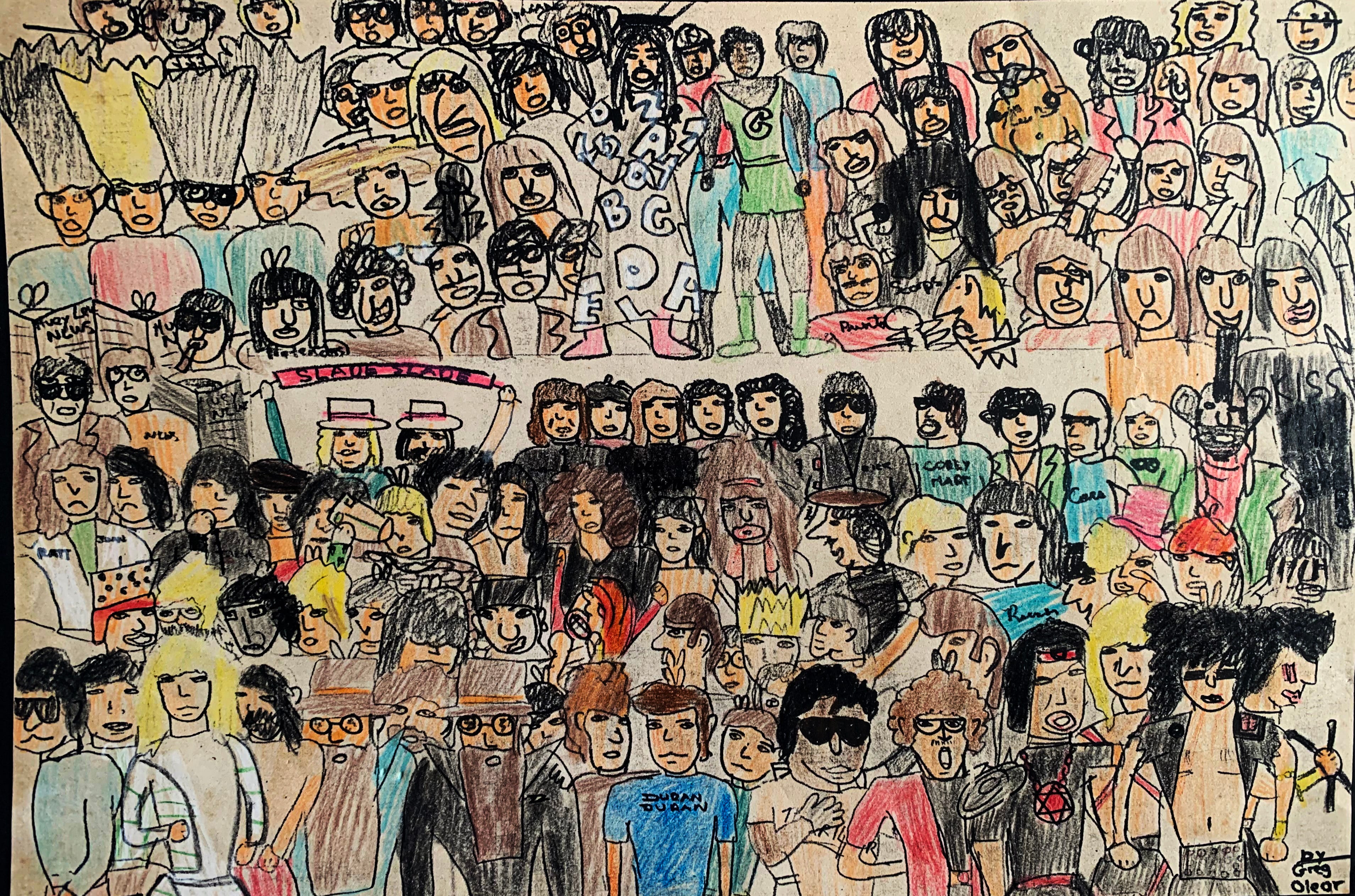 As it happened, this was a boom time for pop music. A new sound had evolved: heavy on the keyboards and the drum machines, with rousing electric guitar solos and vocals too high for me to sing along to without going down an octave, exemplified by songs like “Wake Me Up Before You Go-go,” “Girls Just Wanna Have Fun,” “Karma Chameleon,” “Into the Groove,” “Hungry Like the Wolf,” and pretty much any track on Thriller. In sixth grade, with clearly too much time on my hands, I drew this picture of all the bands I found notable at the time: