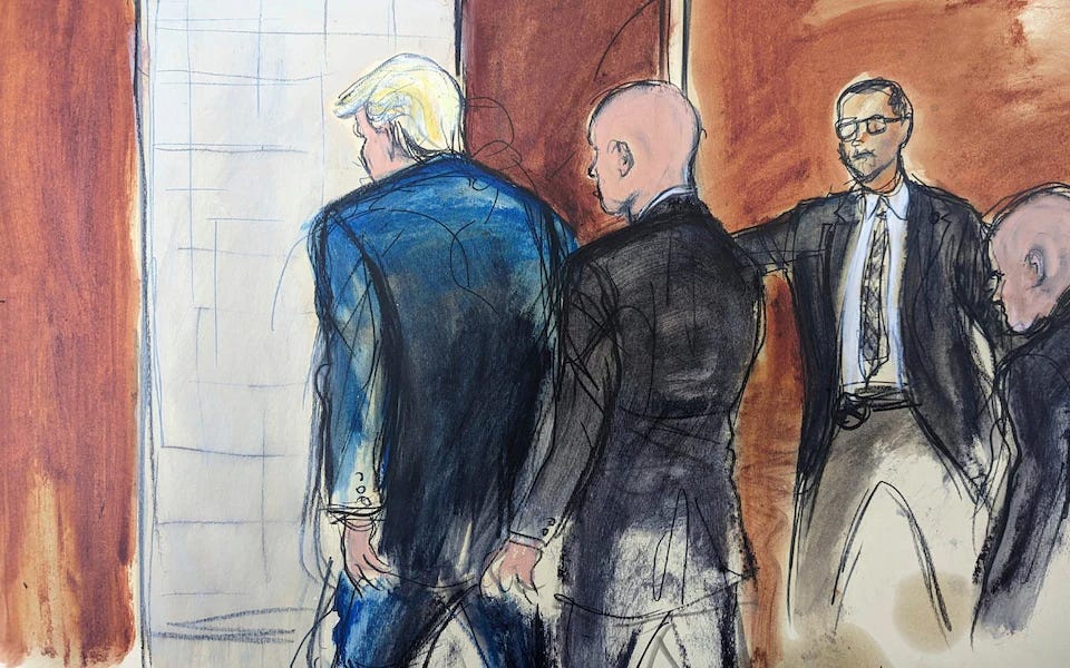 Oh, there was great pomp. Trump arrived at the courthouse with an embarrassingly excessive motorcade. “Why is Donald Trump being treated like a head of state as opposed to a criminal defendant?” the political pundit Steve Schmidt mused on The Warning. “This is all theatre.”
